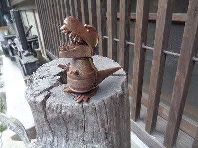 当店オリジナル「スチームパンク風恐竜型メモばさみ(5種類)」完成しました。高さ約11センチ、首と口も可動可能で口でメモ用紙などをはさめ、又下に磁石があるので冷蔵庫の壁面などにも設置できます。税込み価格で一体1000~1500円です。(なお令和7男3月時点で現在残り1体となりました)